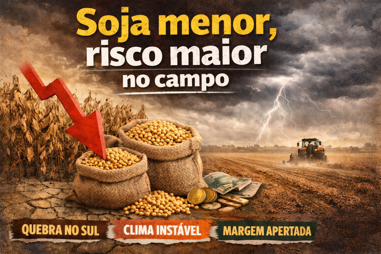 O cenário do agronegócio brasileiro no segundo semestre tende a exigir ainda mais atenção do produtor rural. A redução da produção de soja no Sul do país impacta diretamente o volume nacional disponível, criando um efeito em cadeia que pressiona margens e aumenta a instabilidade do mercado.